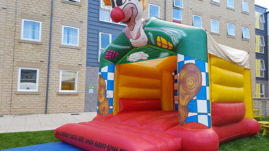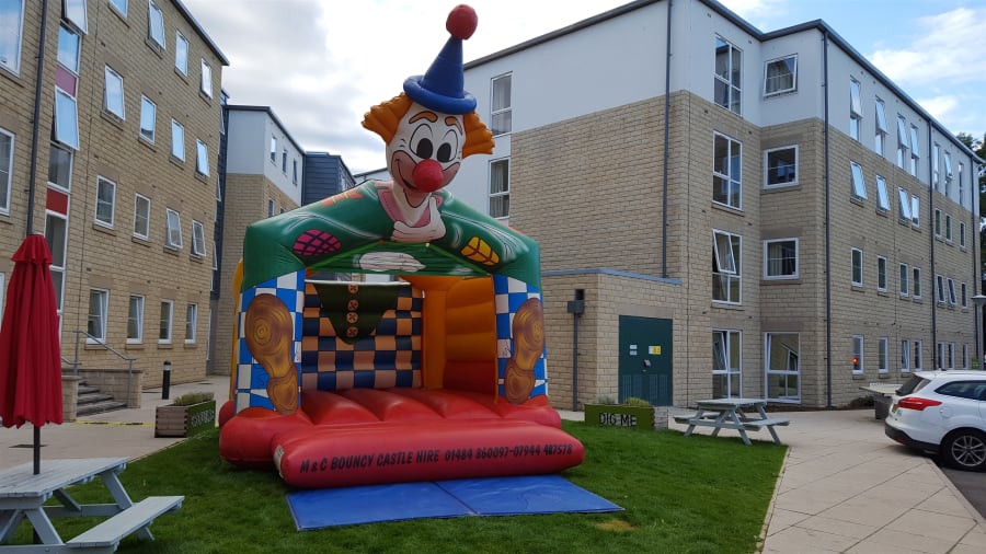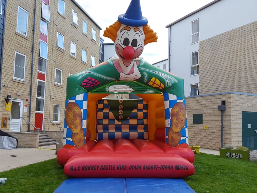 This mega clown-themed bouncy castle is suitable for adults and children, and comes with a rain cover to protect against the elements. It’s a little taller than some of our other inflatables, so if you’re hiring it indoors please ensure that your roof is high enough. It may be available overnight on request, get in touch with us for more details. Overnight bookings need to be kept in a safe, secure location.