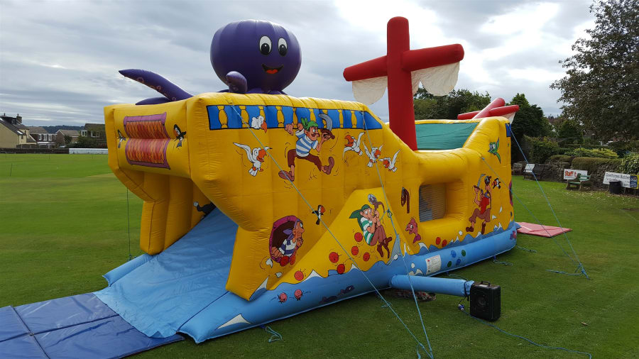 This pirate-themed inflatable assault course is one of our most popular items for hiring throughout Huddersfield and Wakefield. With bright pictures, posts to bounce against, and a slide at the end, it’s perfect for any landlubber’s party! Suitable for adults and children. This unit is ideal for school parties, local galas etc. a real eye opener.