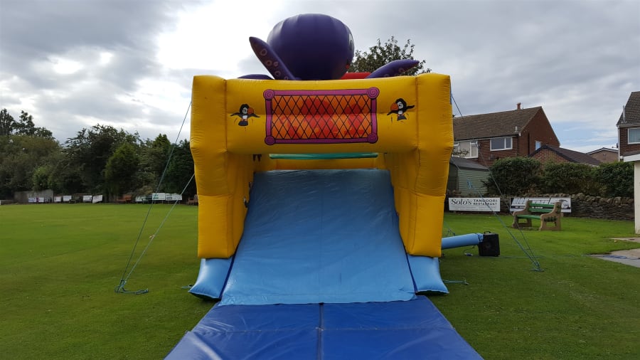 This inflatable will be set up by an experienced member of our team, who will then perform a safety check. There needs to be enough room at both ends for children to safely enter and exit the assault course. Please make sure the children are careful when running back around the castle, so they don't trip over the electric blower, or the ropes holding down the inflatable. As with all our bouncy castles, please do not enter the inflatable with shoes on, and keep food and drink away from the castle. Party poppers are also to be kept away from this assault course.