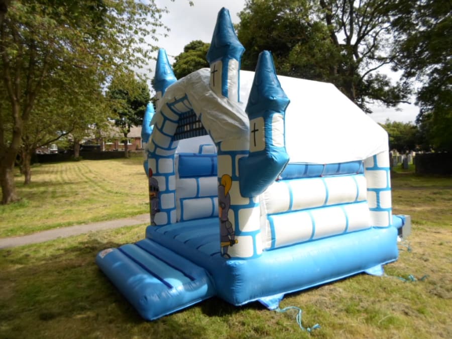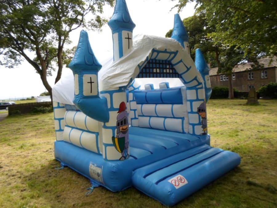 This camelot castle is suitable for kiddies up to age 10 and comes with a rain / sun cover so you can keep bouncing despite the typical British weather. Like all of our items this castle has been recently tested and safety approved.
