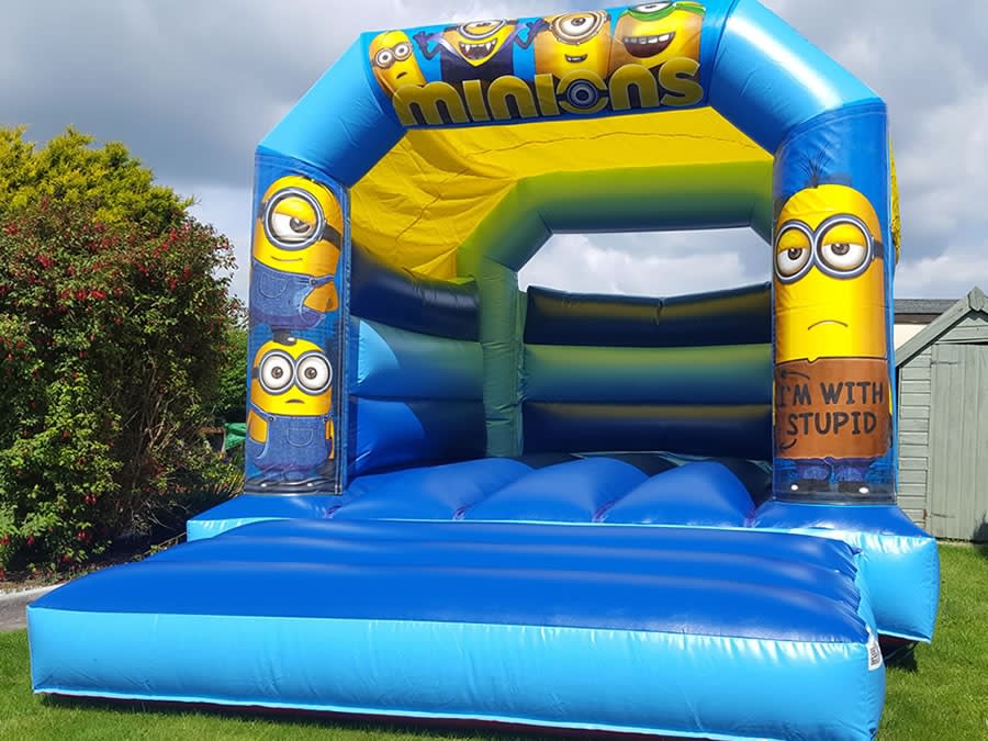 Inspired by the popular Despicable Me films, the Minions Bouncy Castle is a new addition to our kids bouncy castle collection. The low roof means it can be used indoors as well as outdoors, with free delivery throughout Huddersfield and areas of Wakefield. A great choice for any children's party. If the castle is going indoors place check the celling height before booking, if you haven't checked the celling height and we arrive with the castle you will still have to pay for it as that is your responsibility. Please phone if you are unsure.