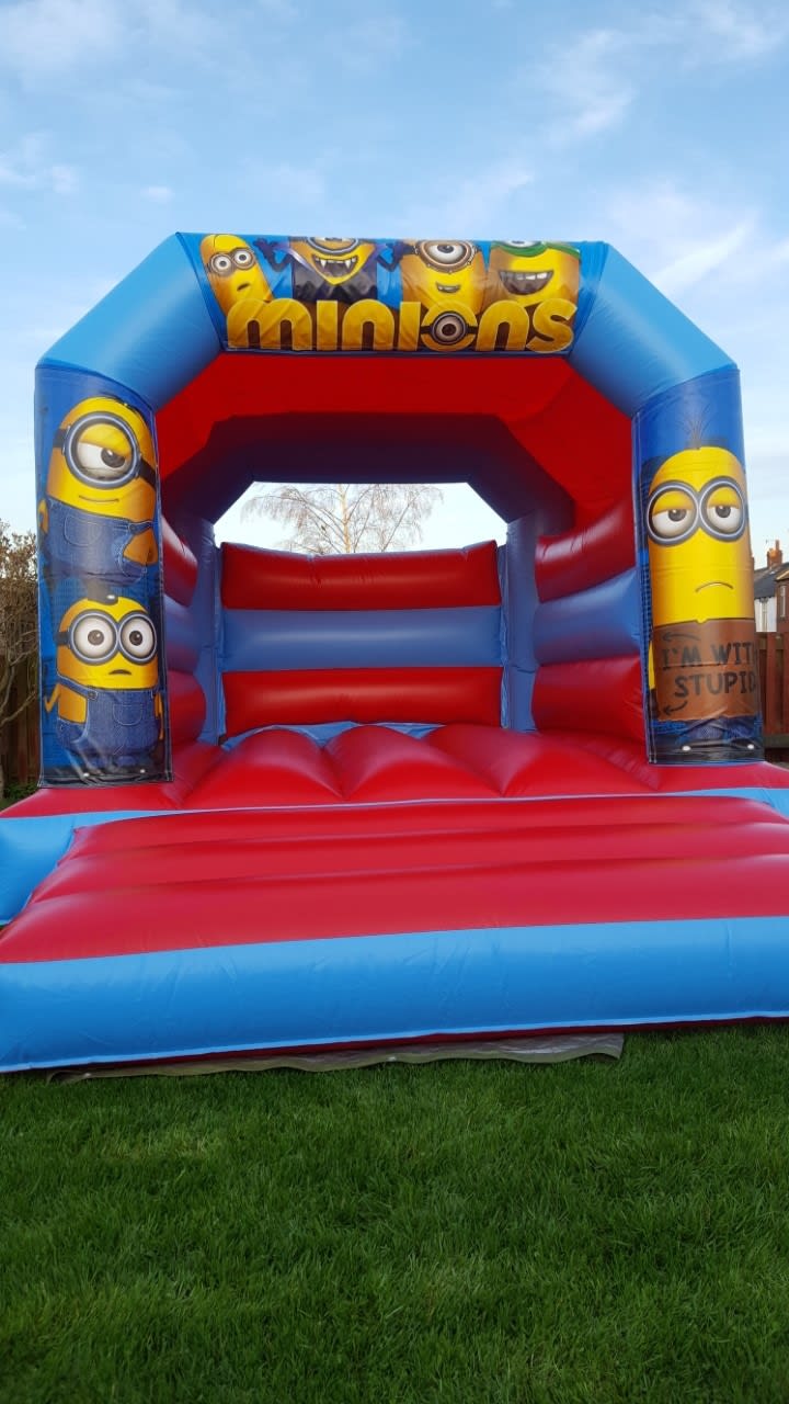 Inspired by the popular Despicable Me films, the Minions Bouncy Castle is a new addition to our kids bouncy castle collection. The low roof means it can be used indoors as well as outdoors, with free delivery throughout Huddersfield and areas of Wakefield. A great choice for any children's party. If the castle is going indoors place check the celling height before booking, if you haven't checked the celling height and we arrive with the castle you will still have to pay for it as that is your responsibility. Please phone if you are unsure.